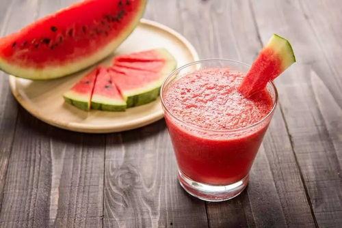 2. 西瓜汁:将西瓜切成小块,放入榨汁机中榨汁,加入适量的冰块,口感清爽。