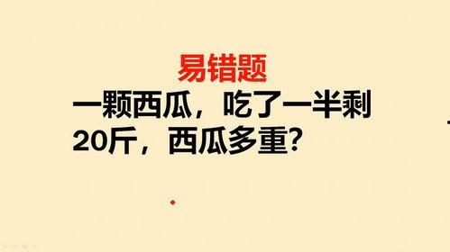 亲爱的读者,你是不是也和我一样,在吃瓜的时候,总是忍不住想挑战一下自己的智商,看看能不能在那些看似简单的问题中找到隐藏的陷阱呢?不过,你知道吗?吃瓜易错题,可不是那么容易就能搞定的哦!今天,就让我带你一起深入挖掘这些让人哭笑不得的难题,看看你能不能在这场智力较量中脱颖而出!